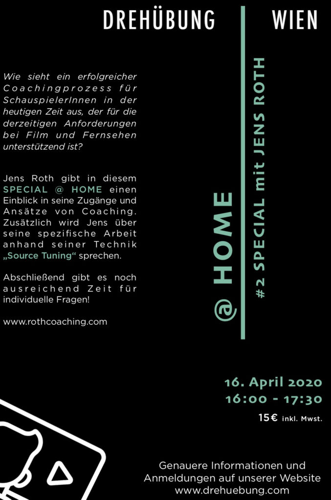 Heute um 16 Uhr: Die Drehübung bietet vor allem Wiener Schauspielern eine Plattform, sich schauspielerisch weiterzubilden und weiterzuentwickeln. In diesem neuen Online-Format erzählt Jens etwas über seine Arbeit mit SourceTuning und die verschiedenen Arbeitsbereiche eines Schauspielcoaches.